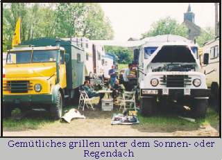 Es ist ganz egal ob die Sonne scheint oder ob es schei.... regnet. Es wird nie langweilig und man hat immer was zu lachen. Gemütliches Grillen unter dem Sonnen- oder Regendach,- wie man es gerade braucht, gehören zu jedem Treffen dazu. Ebenso die Gummistiefel !! -und für die Kidis am besten einen Neopren- Anzug, damit man sie am Abend besser sauber bekommt....Denn jeder der schon einmal auf den Pfingsttreffen in Dormagen war wird mir recht geben: "Es ist jedes Jahr wieder eine willkommene Schlammschlacht für die Kinder - egal wie alt diese sind !"