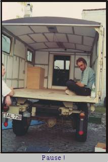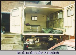 Als wir uns am Donnerstag wie verabredet in Leverkusen einfanden, waren wir noch fest davon überzeugt, das wir uns auf gar keinen Fall einen Hanomag kaufen werden. Was sollten wir auch damit??? Schließlich sind wir absolut eingefleischte Motorrad - Tourer und wollen es auch weiterhin bleiben.... oder ? Als Frank (der noch Besitzer) uns seine Garage öffnete, hinter der sich der mysteriöse „TROPENKOFFER" befand, waren wir schon fast verloren. Doch als Lutz (als unser Freund und Berater)- dann auch noch ankam und sagte:" Mensch ist der Wagen klasse. Wenn ihr den nicht nehmt seit ihr ganz schön dumm." Damit war es eigentlich auch schon um uns geschehen. Wir hatten wohl nur noch darauf gewartet, das man uns sagt das der Wagen nicht nur gut aussieht, sondern tatsächlich auch von der Substanz her gut war. Schön das es noch Freunde gibt, die wissen was gut für uns ist.......